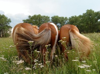 Unser vierbeiniges Team besteht aus unterschiedlichesten Rassen, wie Haflinger, Pinto, Pferde spanischer Abstammung, Knabstrupper, bis hin zum orginal amerikanischen Westernpferd, dem Quarter Horse mit einem Stockmaß ab 1,45 m. Alle Pferde leben im Herdenverband auf großen Koppeln und machen einen Monat "Winterferien" ohne zu arbeiten.
