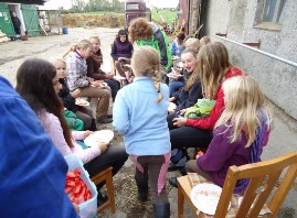 Damit das Essen Zeit hat "zu sacken" beschäftigen wir uns nach dem Mittagessen ruhig und basteln je nach Saision Kunstwerke zum mit nach Hause nehmen. Danach geht es wieder auf den Platz und wir haben viel Spaß mit diversen Reiterspielen und Wettkämpfen.